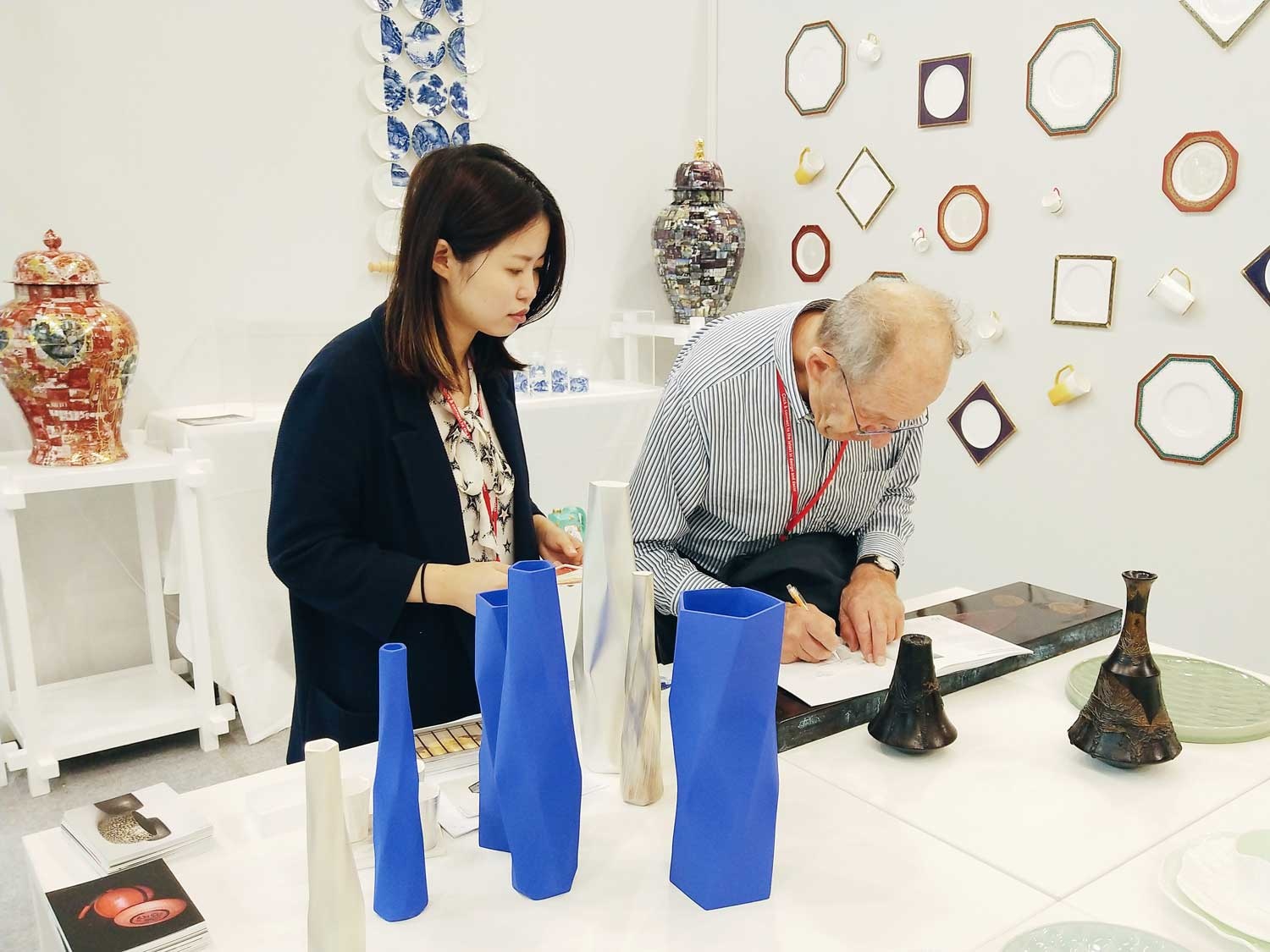 The collectors expressed their appreciation towards Liya Wan’s porcelain painting scroll and vases. The traditional Chinese art form of the porcelain scroll was eye-opening, while the ‘Happy Life’ vases express the artist’s avant-garde idea.