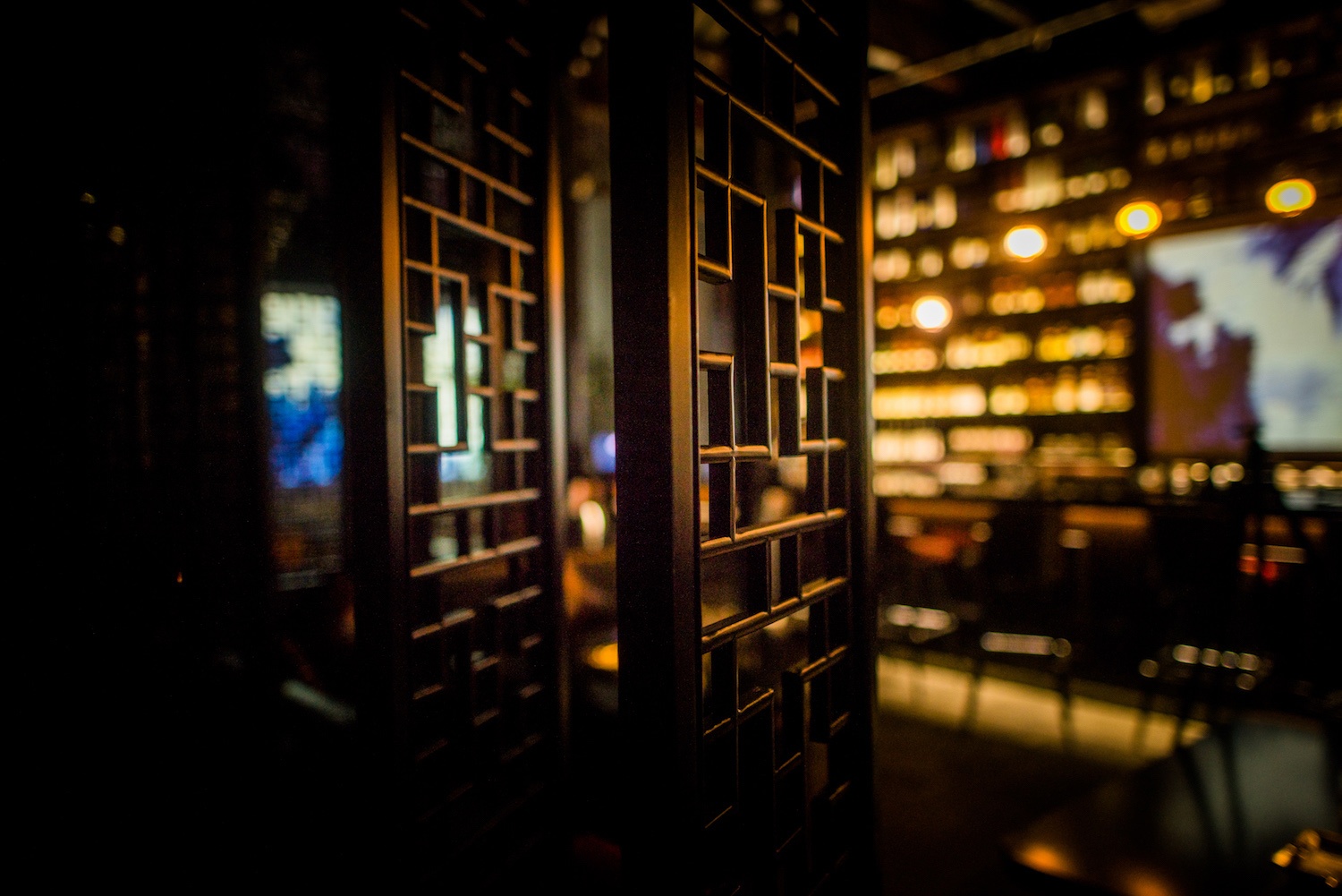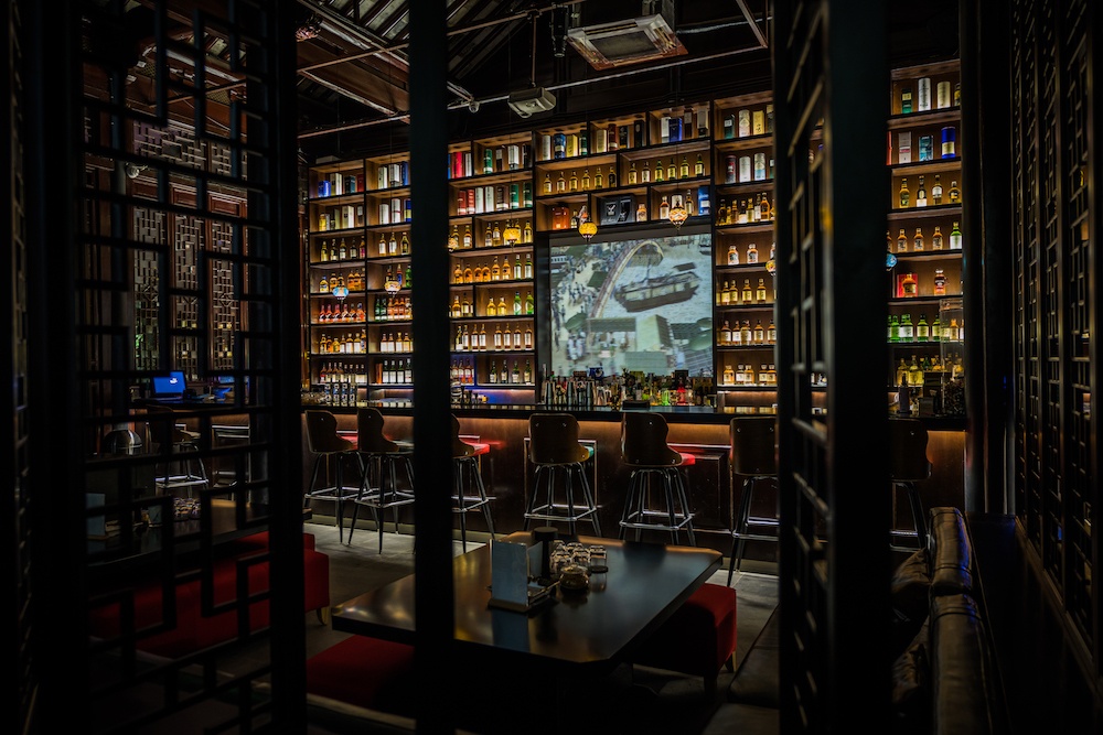 There is a tricky problem in constructing Pan House that everything in the original building cannot be altered, not even possible to hammer a nail in. However, this difficulty has led Li to utilise the advantages of the existing construction. The four original tall pillars made of Phoebe zhennan has been integrated with carved wooden screens that are 3.6 metres tall, to create a semi-private space and the centre of the bar. Another highlight appears in the wine cabinet which is 9 metres wide and 4 metres high, taking up 36 M² vertical space. It gives customers a striking impression when they first enter the bar.