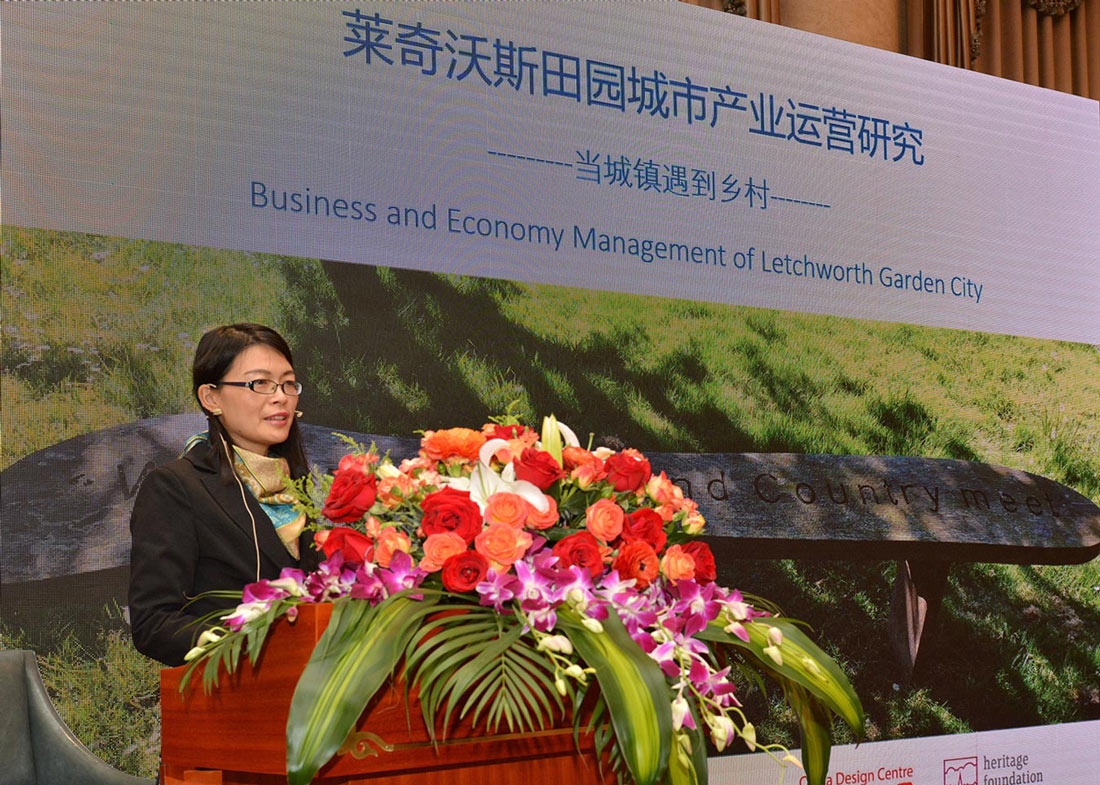 Dr. Yingying Tian and her colleague Ivy Yi worked with David Ames from Letchworth Garden City Heritage Foundation and Dr. Susan Parham from International Garden City Institute, to carry out the research on the business and economic management of Letchworth Garden City. After reviewing the history of Letchworth Garden City in the past 115 years , Dr. Tian elaborated the management of Letchworth Garden City in industry, town centre, agriculture and environment quality. Finally, Dr. Tian presented a summary of recommendations to help the economic strategies of the ideal town practice in China. These include keeping good balance between market mechanism and quality of life, encouraging diversity and flexibility in adjusting industry sectors, improving education and culture facilities to attract more people, and the land value capture model to ensure town’s long term development.