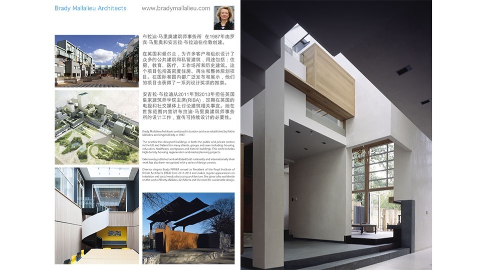 China Design Centre recommended Angela Brady as the keynote speaker at the Conference on Sustainable Buildings and Structure & The 2nd Low Carbon Construction Industrialisation Forum being held from 29-31 October, at Suzhou Xi'an Jiaotong University. The theme of the conference is facing up to the challenge of climate change and how to mitigate its effects on socio-economic and environmental conflicts in urban development. Brady is a past president of RIBA (the Royal Institute of British Architects) and Director of Brady Mallalieu Architects, who celebrate 27 years as an award winning RIBA Chartered practice, specialising in quality contemporary sustainable design. Current projects include high end office fit outs and quality mixed tenure social & private housing projects in London and master planning projects in China.