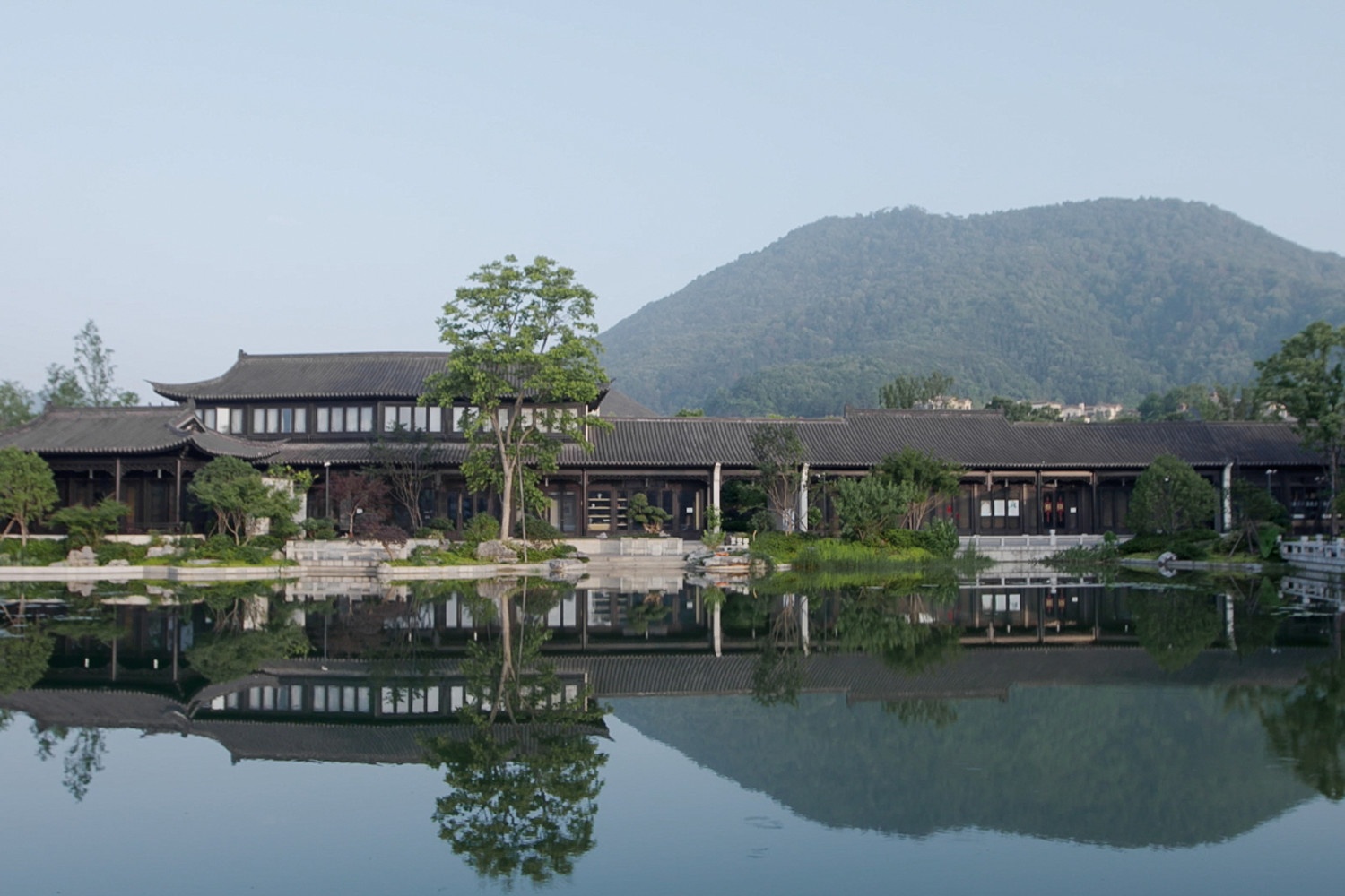 In addition to the progressive layout, another impressive improvement was made to the entrance. Relatively hidden and small compared to the 2,000 square metre area of the Tea Academy, the entrance is designed to make guests feel private and intimate when they walk in. The earliest design of the entrance was a big door facing the lake, which was later considered to be too big to keep the stability of the atmosphere inside the Tea Academy when it is opened. To maintain the tranquillity inside, Bao changed the entrance into a small door so that the gentle energy of the tea academy inside will not be interrupted or altered easily by people who come in from outside.