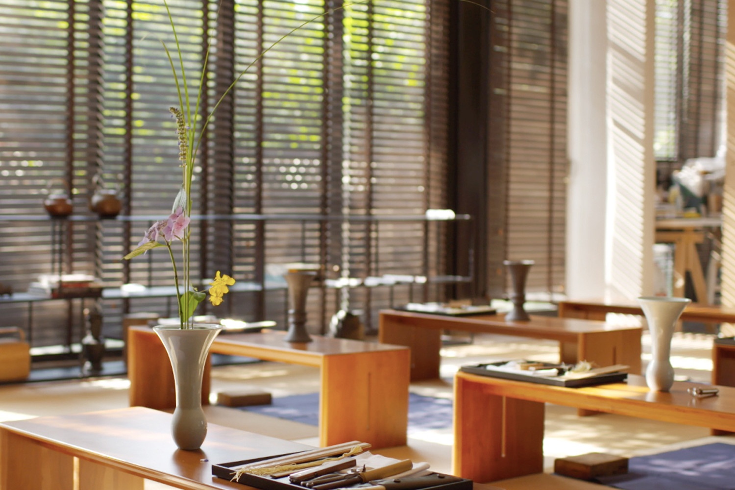 The Tea Academy in its early morning is not known by many because the open hour starts relatively late. However, the Yubai Tea room is the most enjoyable to have tea and meditate in early mornings, when the sun softly shines through the bamboo curtain onto the tatami. Tea experts have subtle requirements of their space for drinking tea. The design of Yubai tea room and Honglu tearoom demonstrates Bao's philosophy of an ideal space for tea lovers. In the first design draft, several tea rooms were all designed to have transparent glass all around the tea rooms, which would create a sense of instability. Later, Bao and his friends left a small window in the middle of the walls made of black iron. For example, in both Yubai and Honglu tea rooms, there is a small window in the middle of their walls so that when people drink tea in Yubai room, they would see other guests drinking tea in the Honglu room as well, which is the highlight of the tea rooms. Although people couldn’t hear what the others are talking about, they can feel the existence of the other party, which is enough to make everyone feel more connected in a subtle way just like the two tea rooms that are connected but do not interfere with each other.