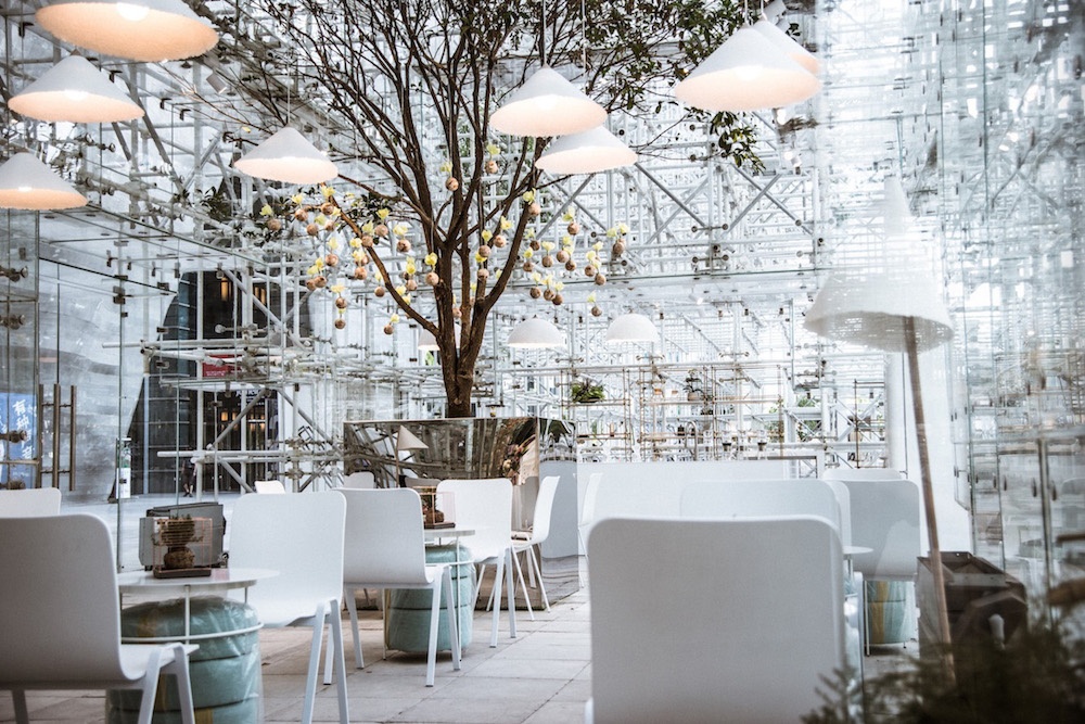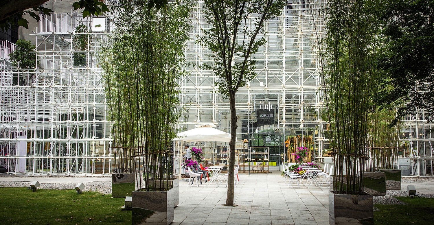 It has an outdoor area of about 600 square meters, and a glass-structure indoor area of about 300 square meters.
