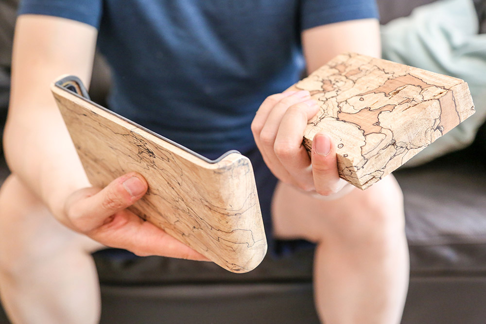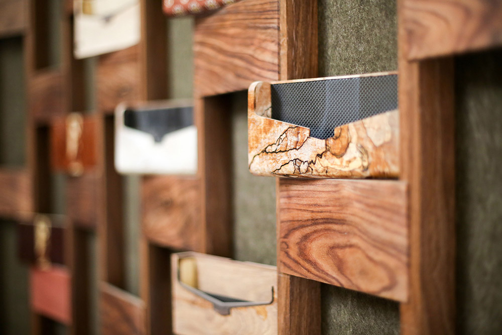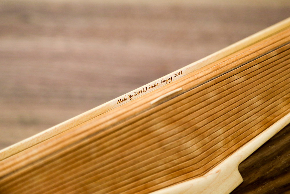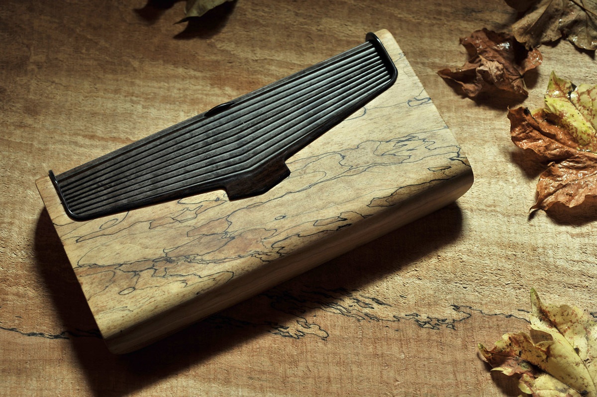 尝试了世界各地的优良木材,组合成前所未有的样式,反复推敲:将包体的厚度减到木材所能承受的极限,并以碳纤维加固。
