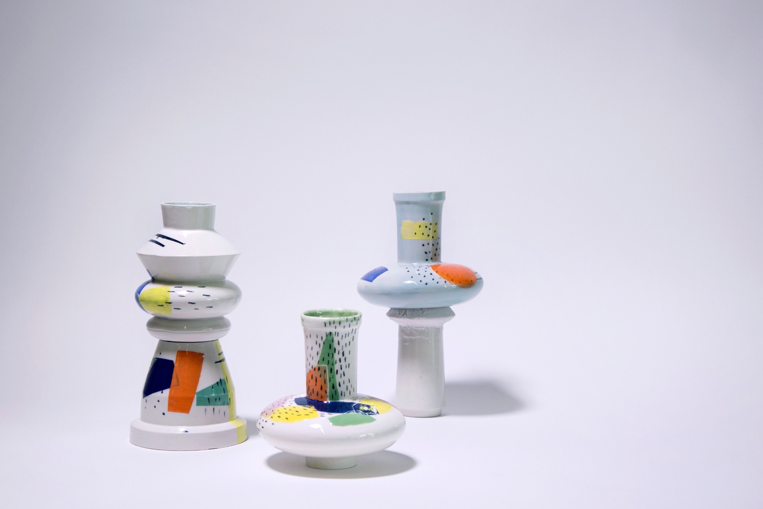 暑假在艺术拍卖公司实习的经历,让殷切注意到意大利孟菲斯设计中运用色彩度高的鲜亮颜色和富有新意的涂饰,和中国南宋的青瓷器,特别是龙泉窑青釉及制瓷工艺的珍品。艺术市场中这两种瓷器的比重直接说明多数藏家对这两种国际设计风格的认可。