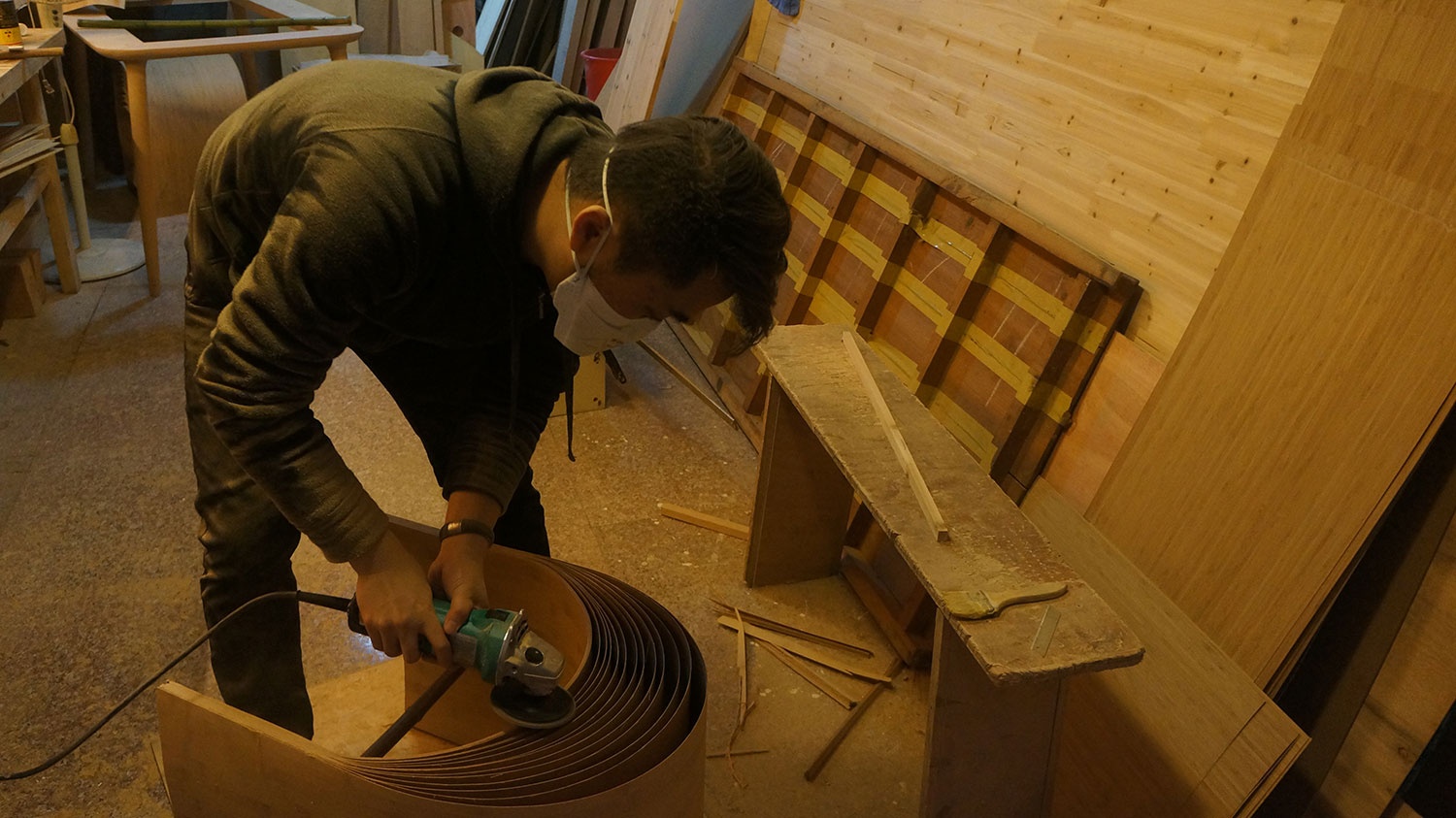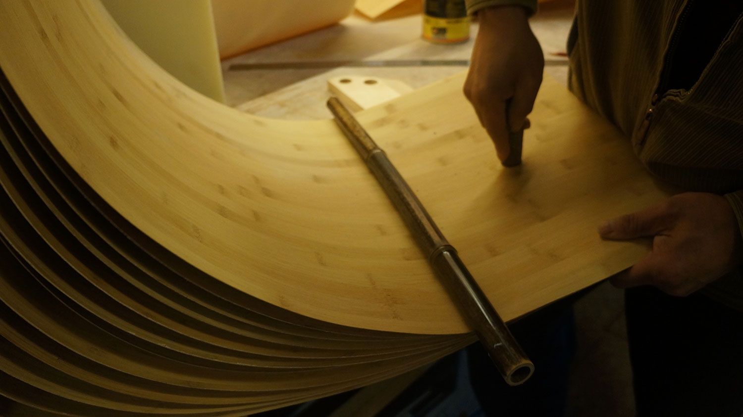 身为一名设计师,材料和工艺是陈旻关注和不断追求探索的对象。“杭州凳的蓝图其实已在我脑中潜伏多年,而当在杭州一家竹业加工厂看到工业加工制成的各种厚度的竹皮,想法通往产品之路便在我眼前清晰可见了。”