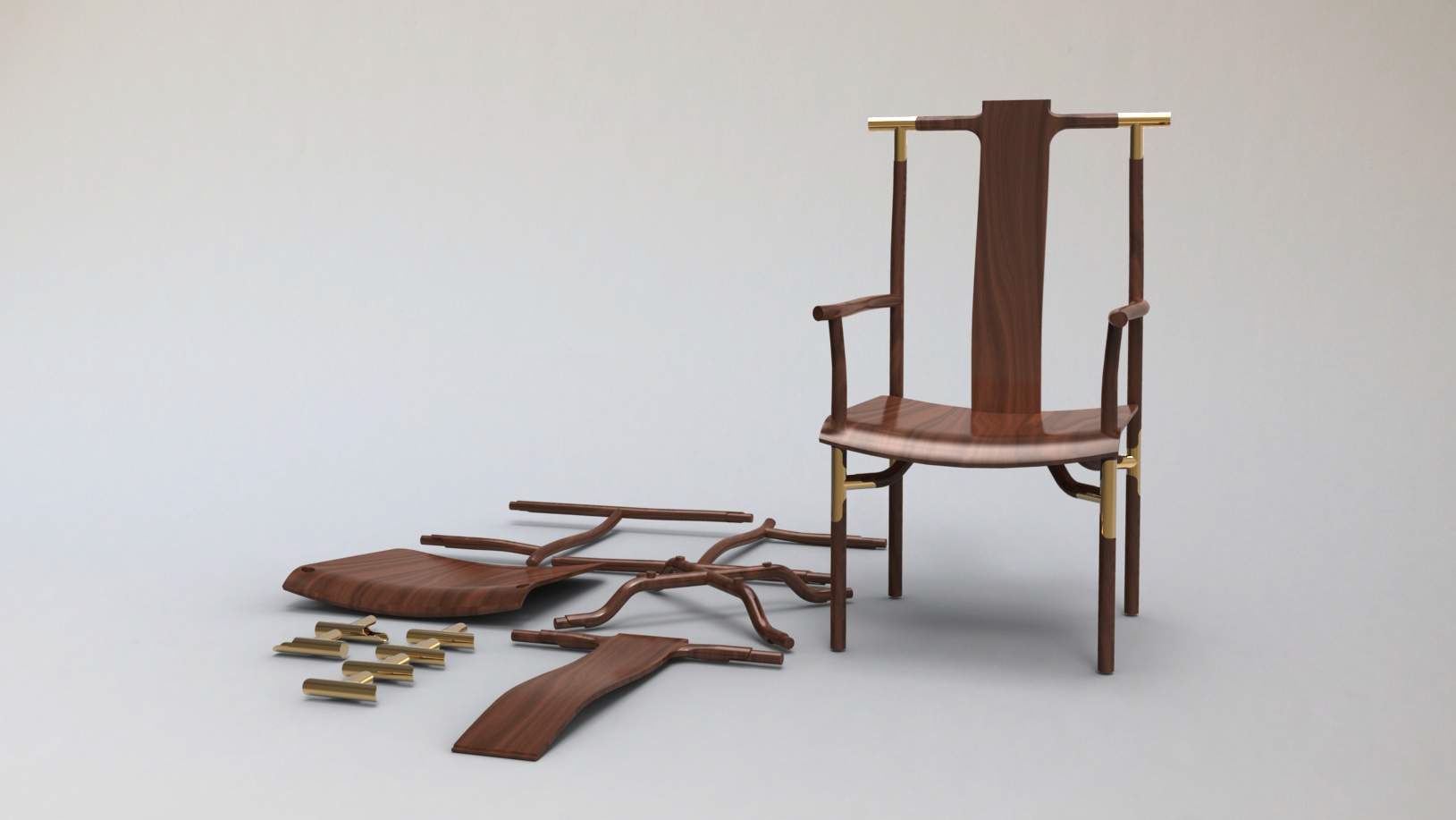保留传统明椅的气质,引入现代三通结构,实现了整椅拆装的目的。