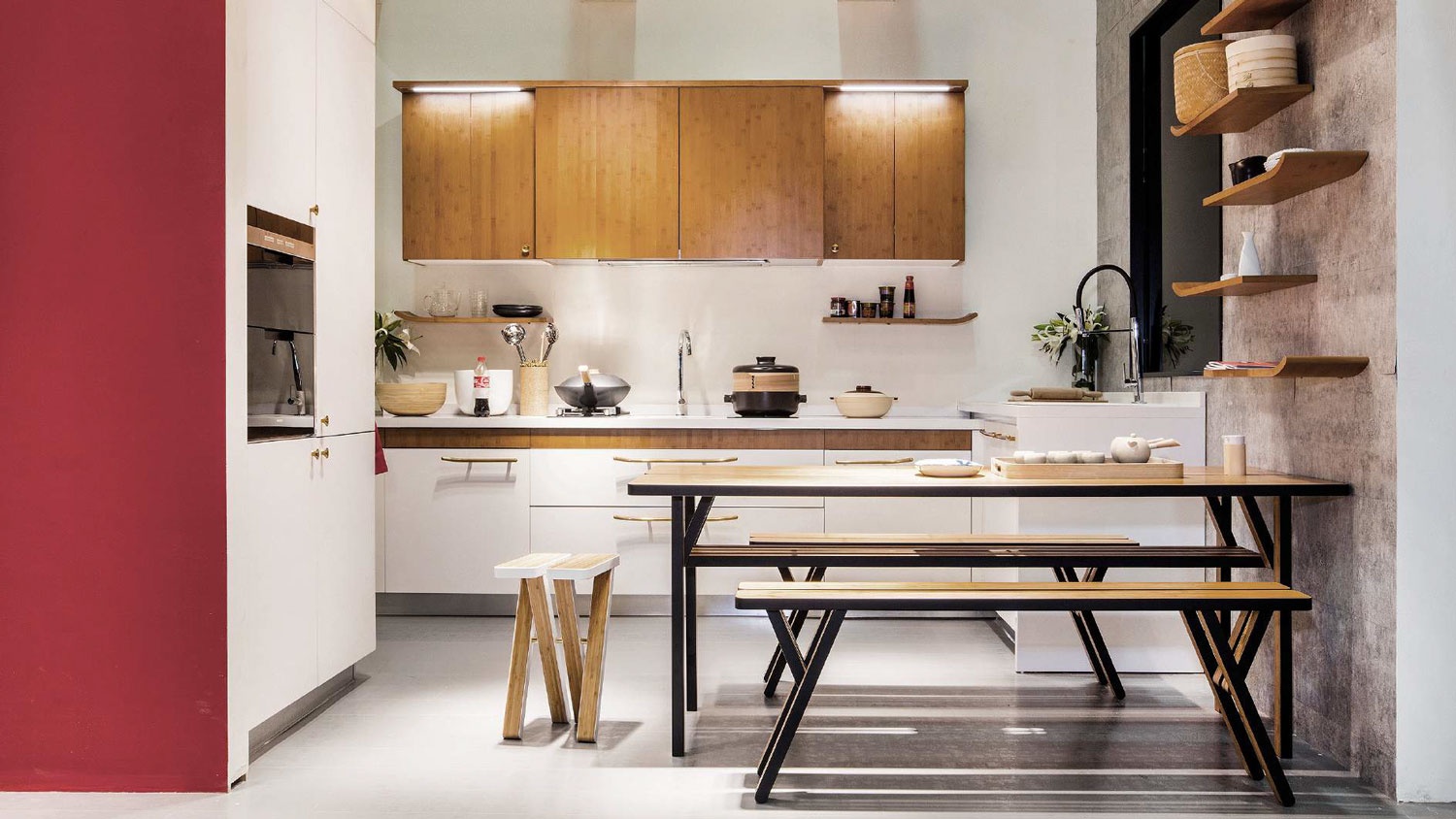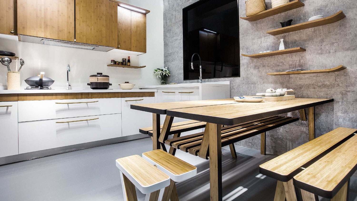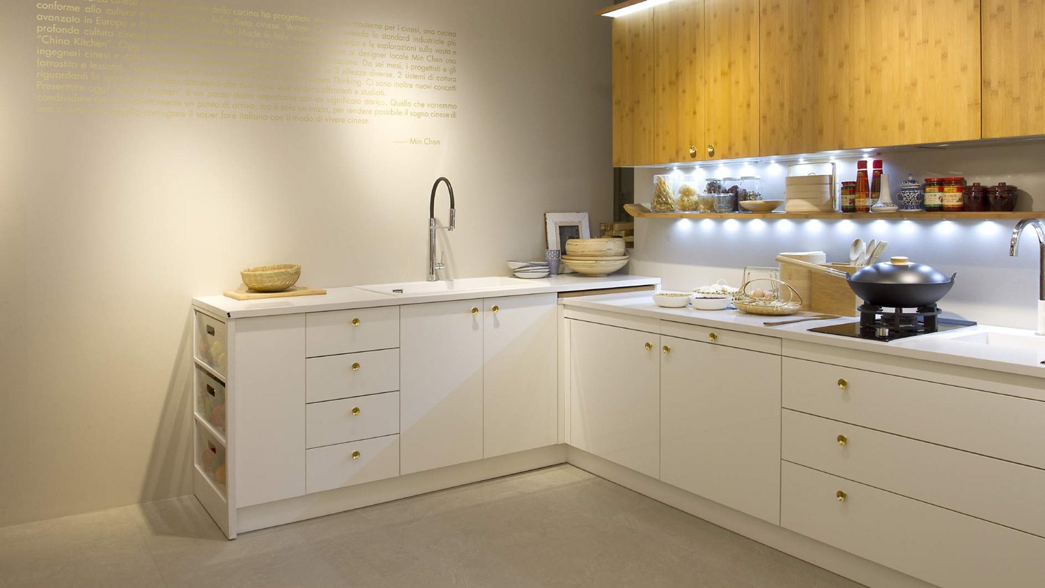 为意大利威乃达厨柜设计的“中国厨房”,是第一个专门为中国人使用习惯设计的现代厨房,设置了多层次操作、双流程系统等。竹材料的运用,也诠释了中国传统雅文化的理念。