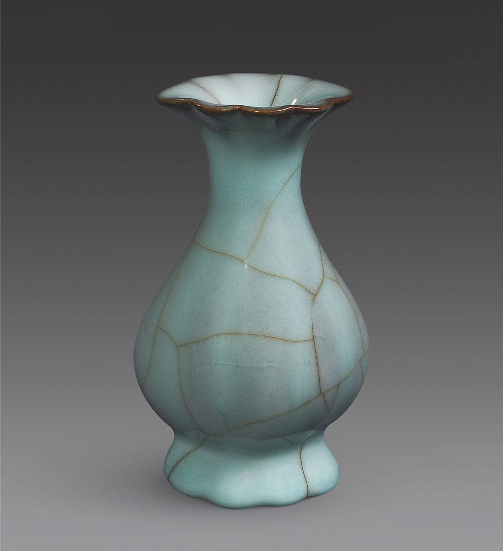 Celadon is a pottery term denoting both wares glazed in the jade green celadon colour, also known as greenware, and a type of transparent glaze, often with small cracks. Celadon originated in Longquan which is renowned for these highly admired glaze.