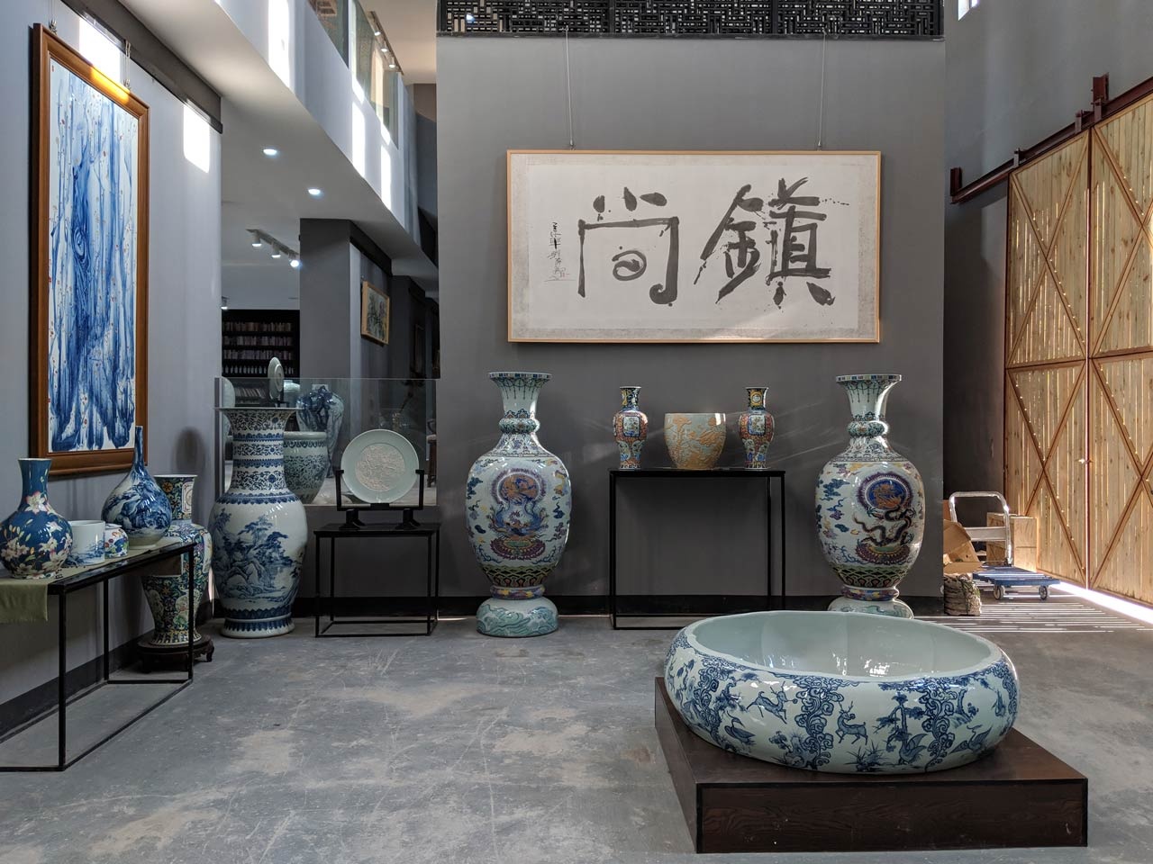 Kudan was once an unknown individual workshop in Jingdezhen’s eastern suburbs. Due to its unique style and the superior quality of their products, they have gained popularity among Japanese tea houses and museums. It is considered to be the best high-quality porcelain studio using traditional craft skills in Jingdezhen. Zhenshang Ceramics was established in 2000, and specialised in designing and making display porcelain for so many years. They insist on making porcelain by hand with different techniques, including blue and white painting, famille rose, glazing and carving. There you can see the craftsmen working on the decoration of giant vases, carving an exquisite piece that takes 3 months, and so on.