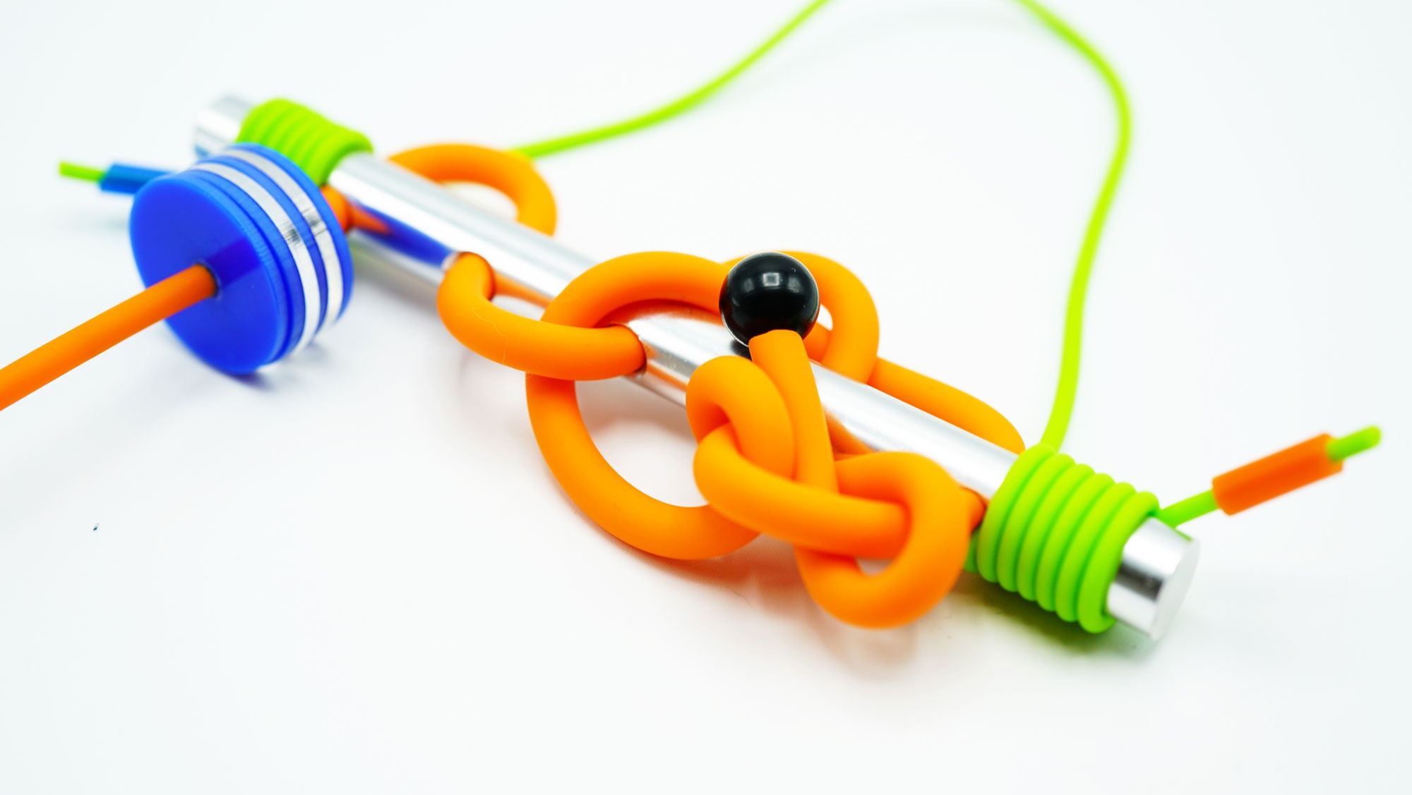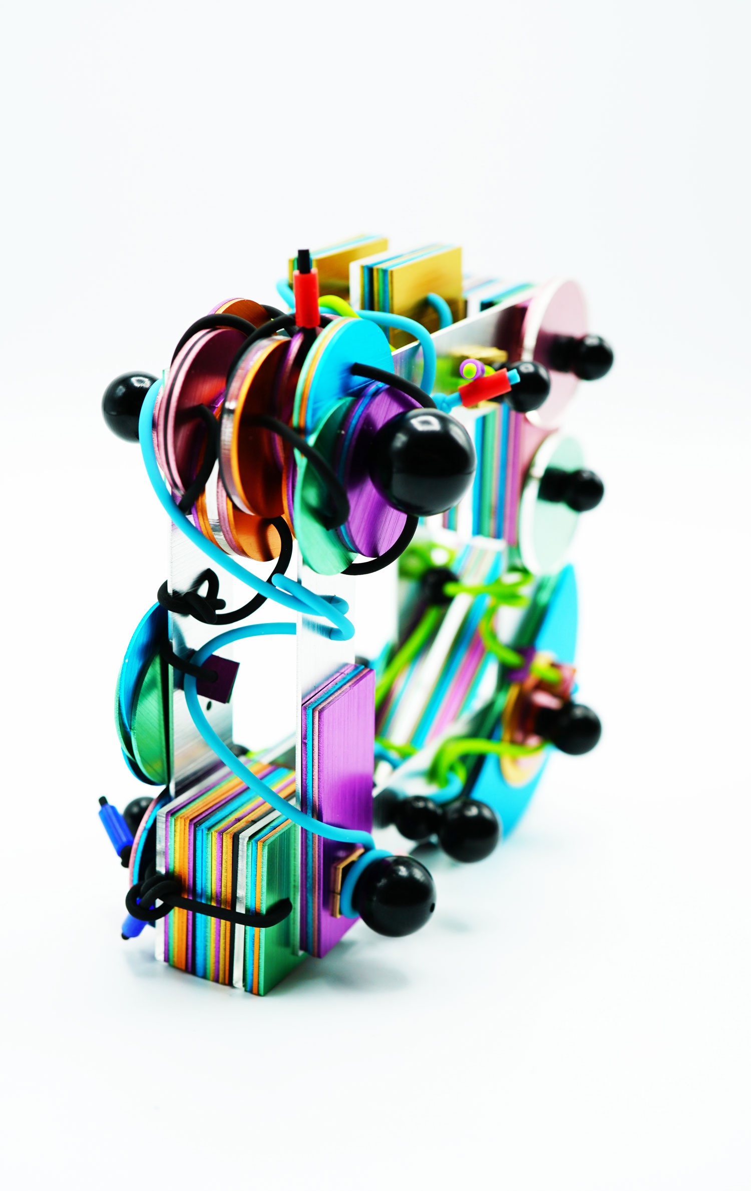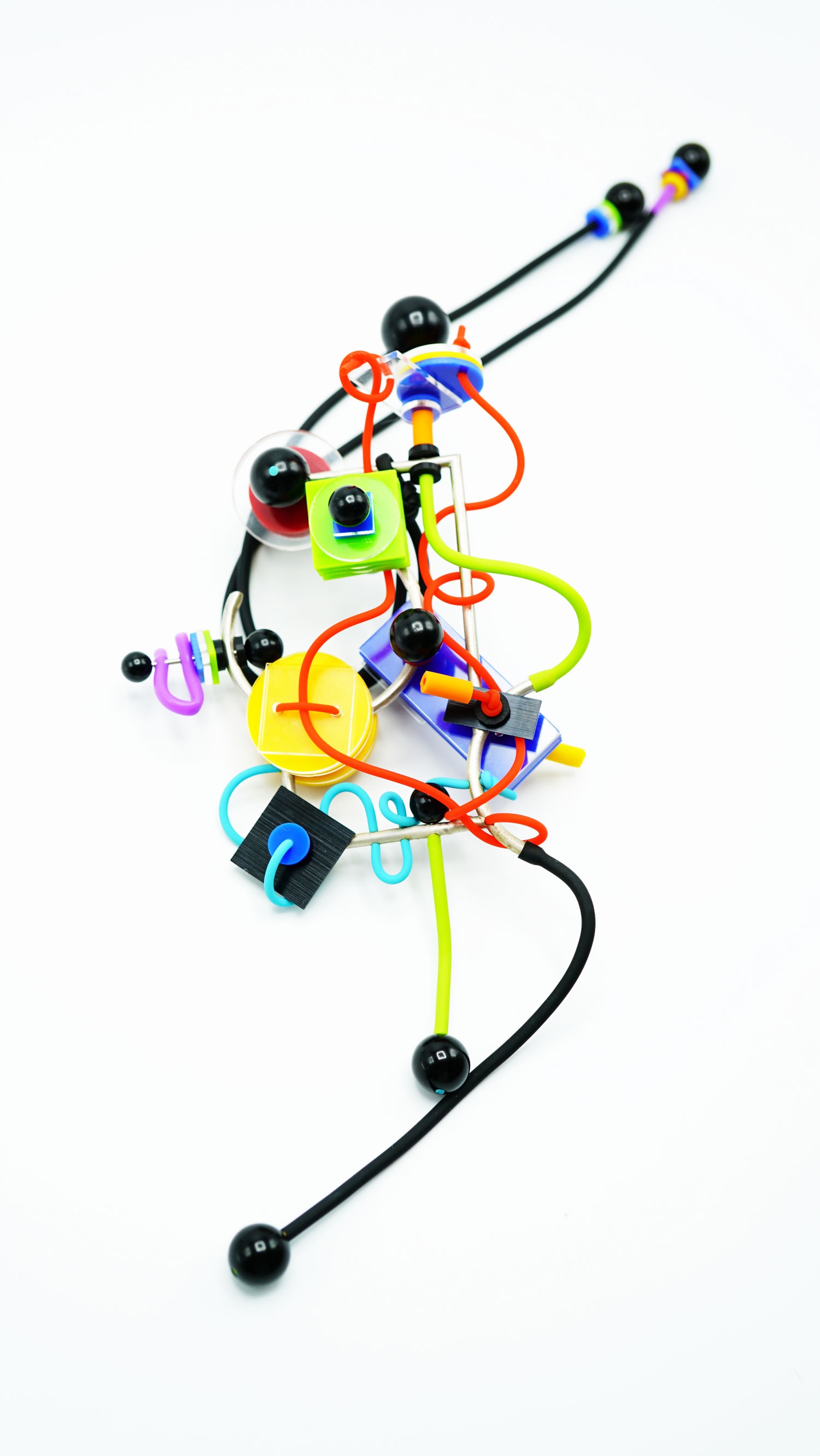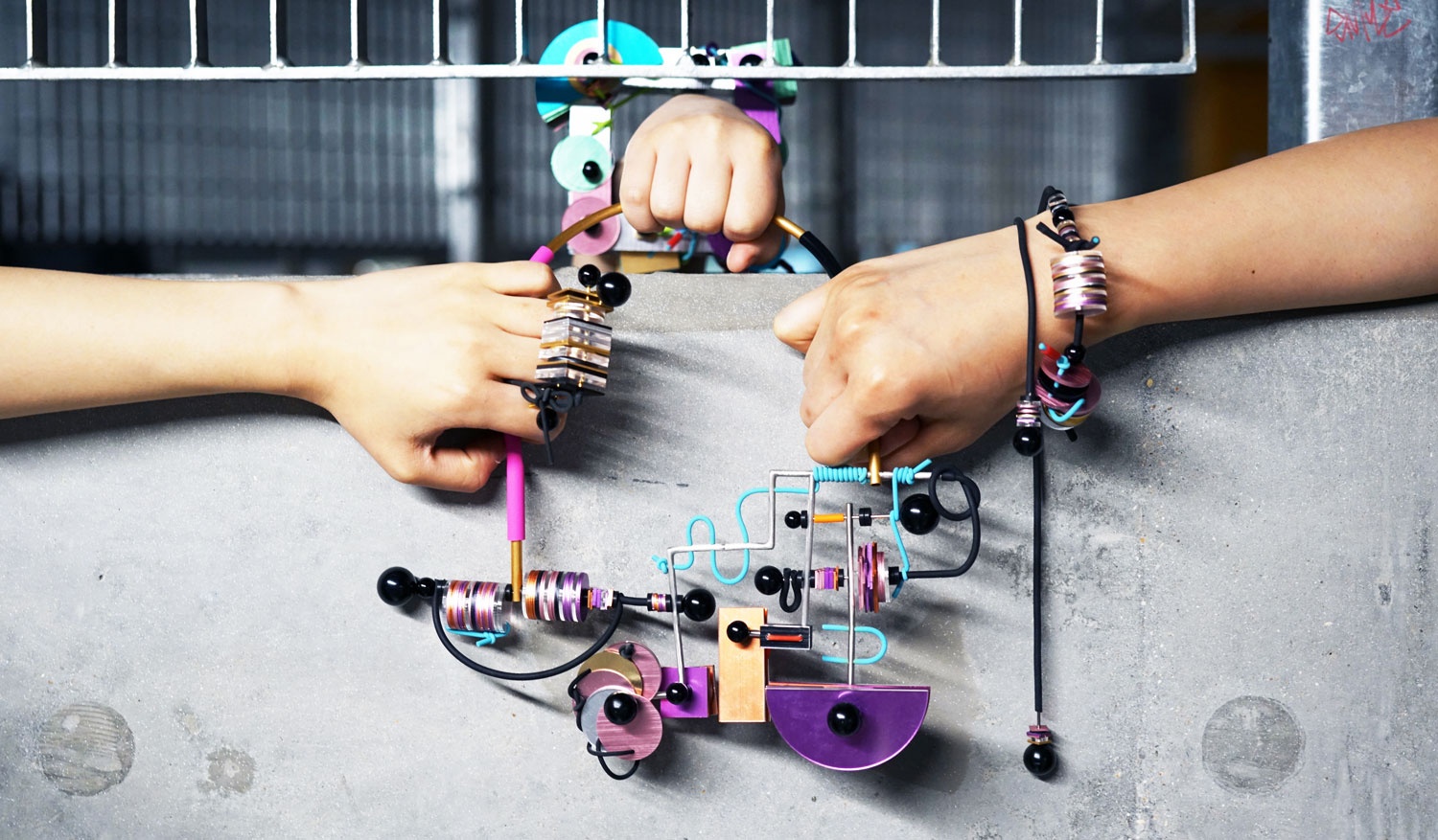 Most importantly, this project is a participatory piece which basic frames and interchangeable spare-parts are manufactured using industrial materials, that allows the wearers to replace and even remake the jewellery using all those spare "chips and bars". In this process of self-controlled changing and overall infinity of possibilities, she tries to construct a fantasy of cyborg and post human future to break the perception traditionally of gender and identity.