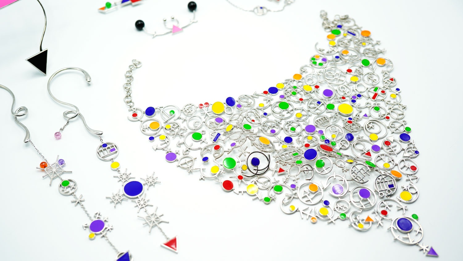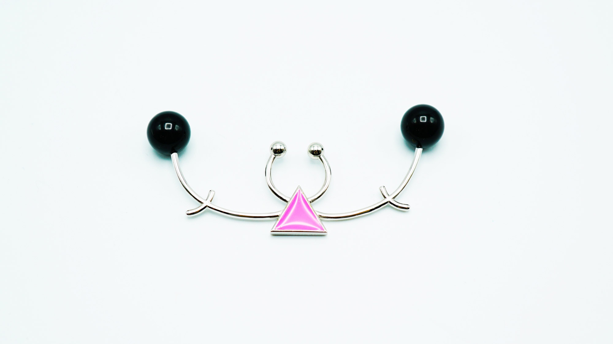 Particularly she used LGBTQ symbols to mimic facial hairs/ braid in this collection, and hopefully, it will work as a humorous approach challenging rigid recognition of genders or gender stenotypes. The purpose of her design is to enable people who share the same beliefs in supporting LGBT rights campaigns can make a clear, delightful yet elegant voice by wearing her jewellery.