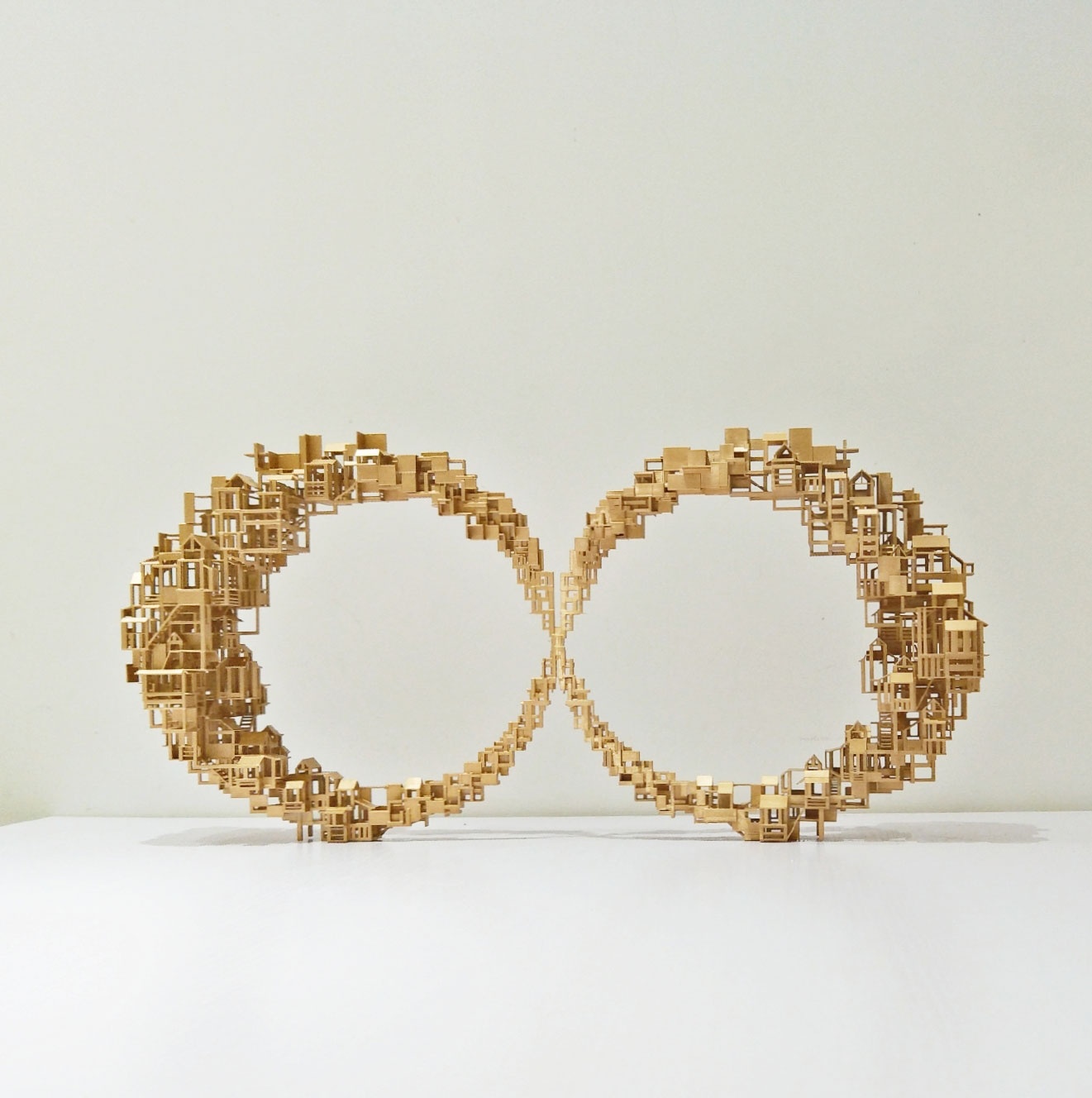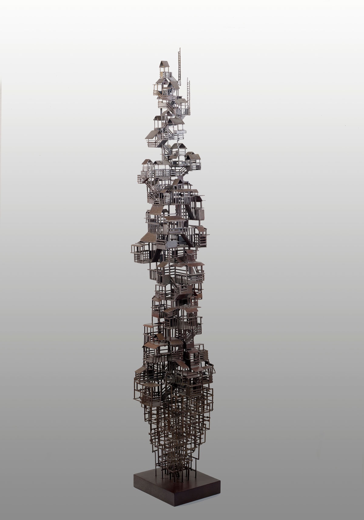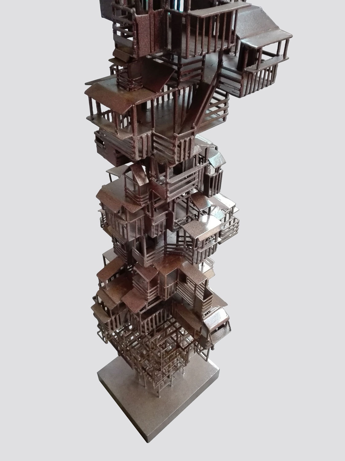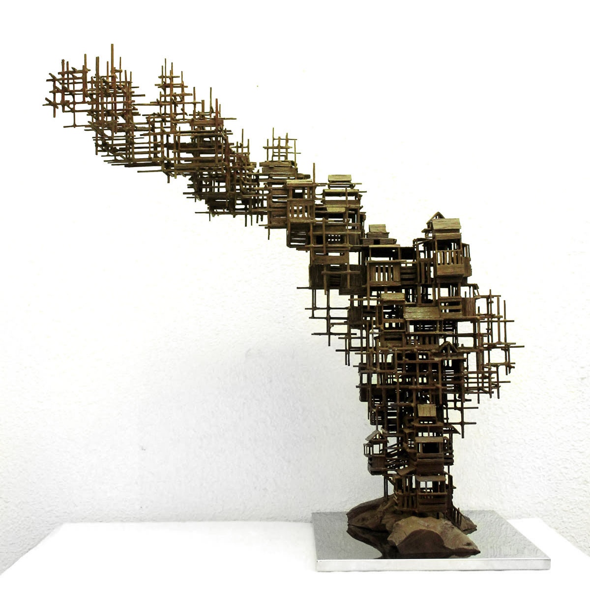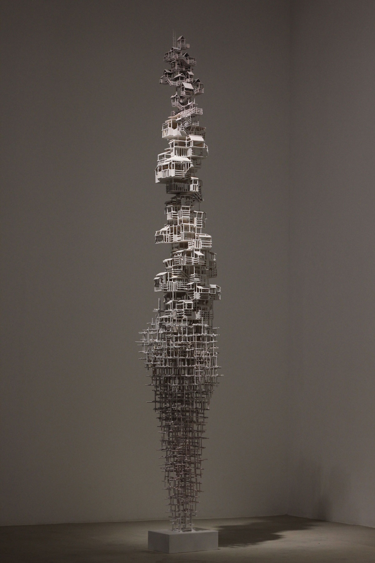 Tower of Babel echoes the Chinese spiritual pursuit of ‘Mother Nature’s Masterpiece in Man’s Hands’ and seeks for the perfect harmony between architecture and nature. With its oriental roots, it represents a quite different composition with its western peers. The artist attempts to explore the western impacts upon Chinese traditional architecture culture, sympathising the increasing lost identities and withholding the respect for and legacy by Chinese traditions. By using super-realistic approach, the artist decomposes Chinese architectures and imbeds them with the modern components, destructively constructs a spiritual world with his unique language.