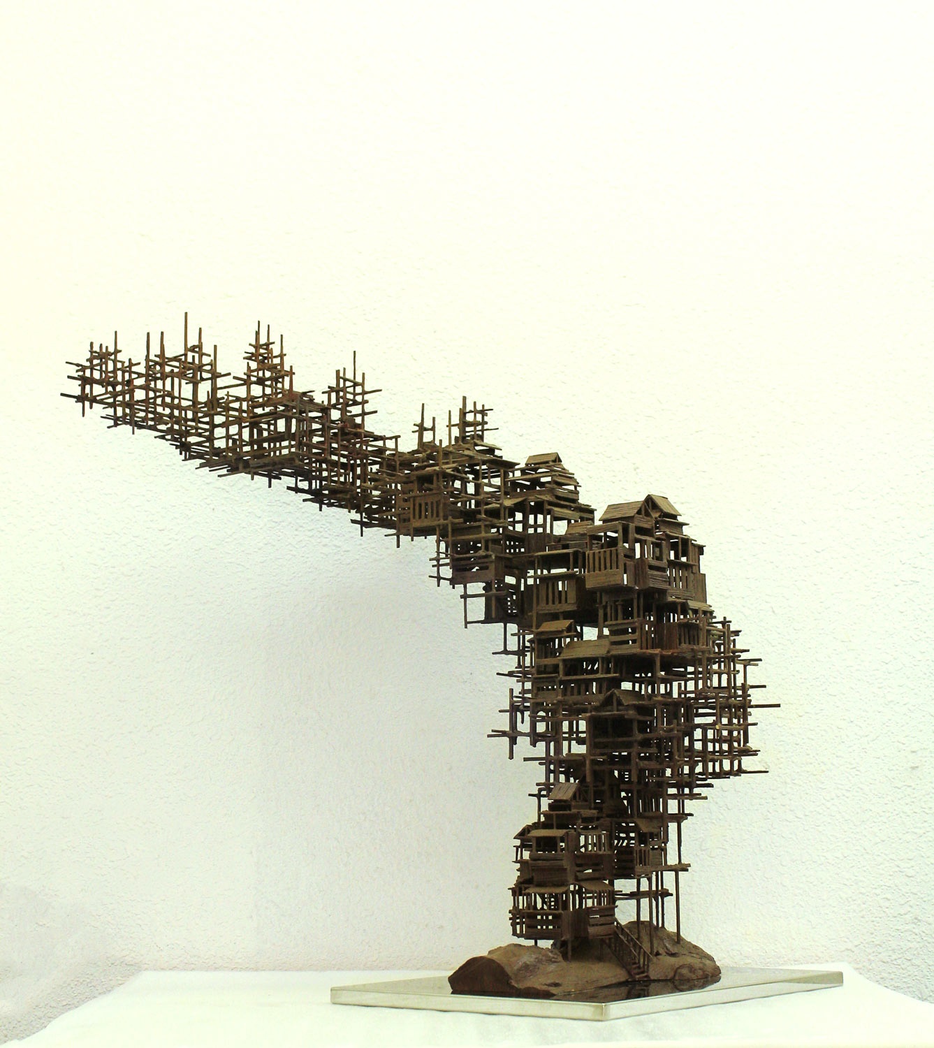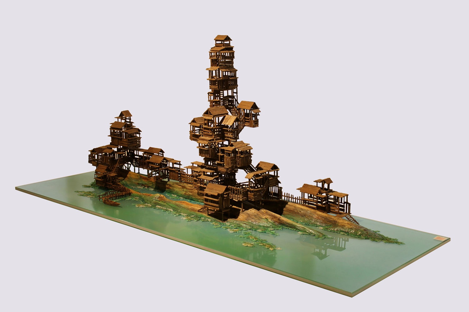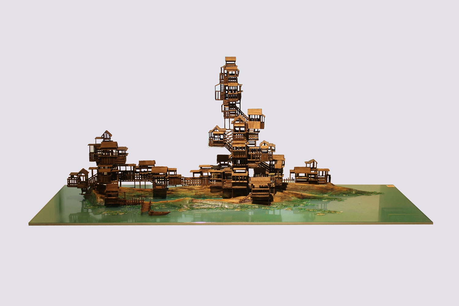 Gone City depicts a group of rising and disappearing ancient architecture. It is the artist’s reflection on the concerning extinction of traditional architecture and its culture. Ding explained: “The modern architecture in the Chinese cities now are often disconnected with the tradition, culture and lose the ability to communicate with nature. I feel China is losing its own judgement of lifestyle and value with the breakdown of the traditions. I think as well as the exploration of new architecture, it is important to focus on the reconstruction of the beautiful, poetic and natural dwellings as we had in the past.”
