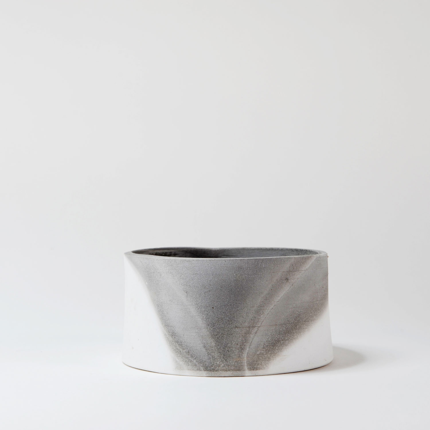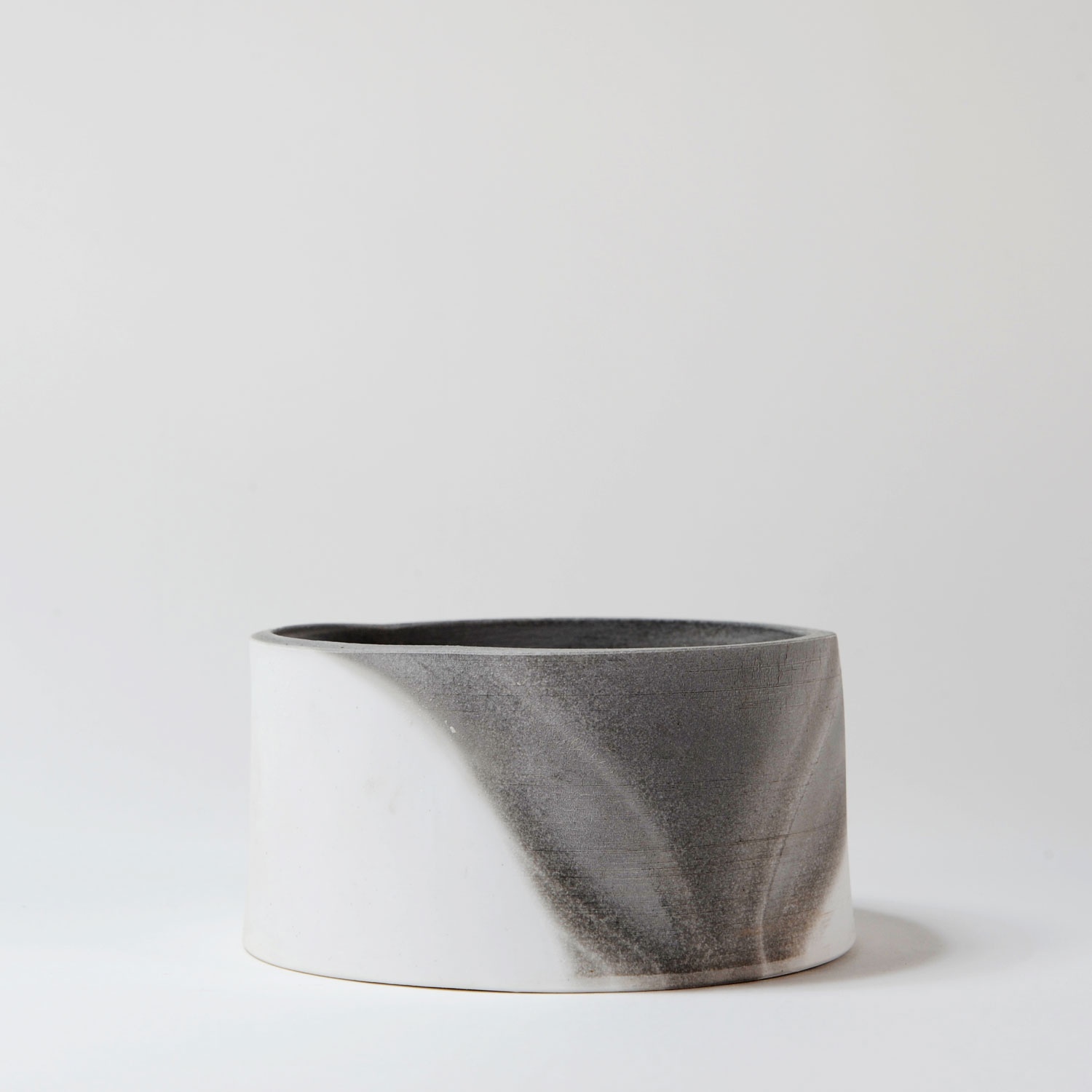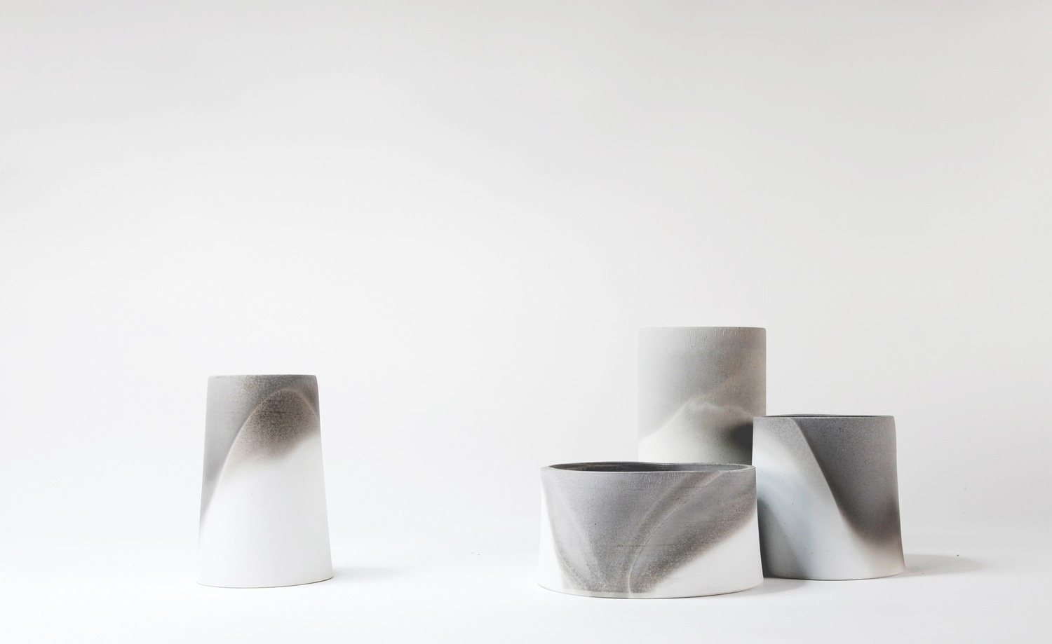 Fang’s methods are different from the traditional pursuit of porcelain: the exquisite glazing, painting, carving; everything needs to be perfect and avoids any mistake. Fang instead embrace the ‘accidents’, letting the material speaks for itself. There is no glazing, and with the smoked effect, the process is mostly uncontrollable; hence every piece is unique.