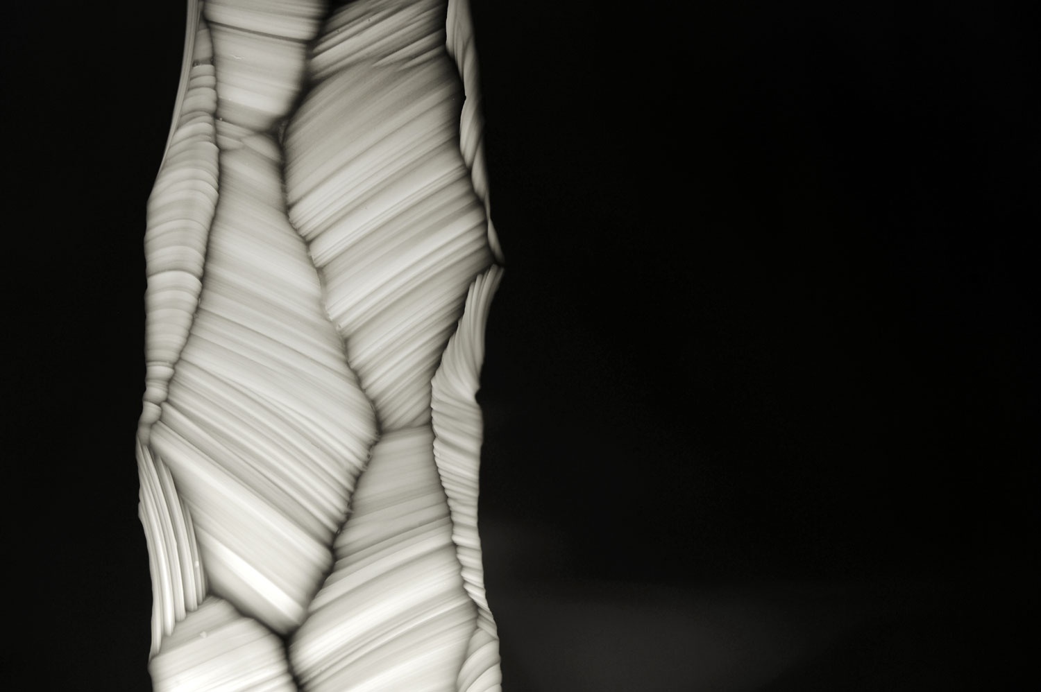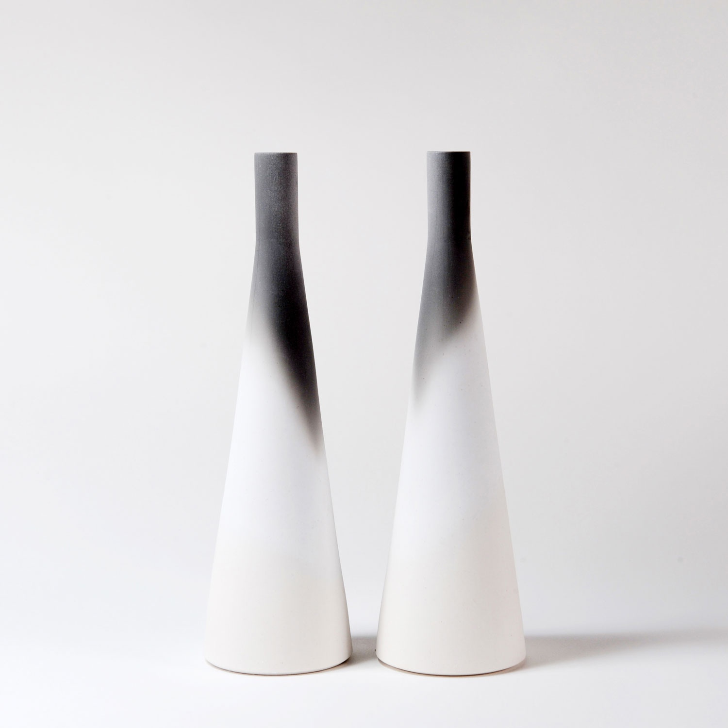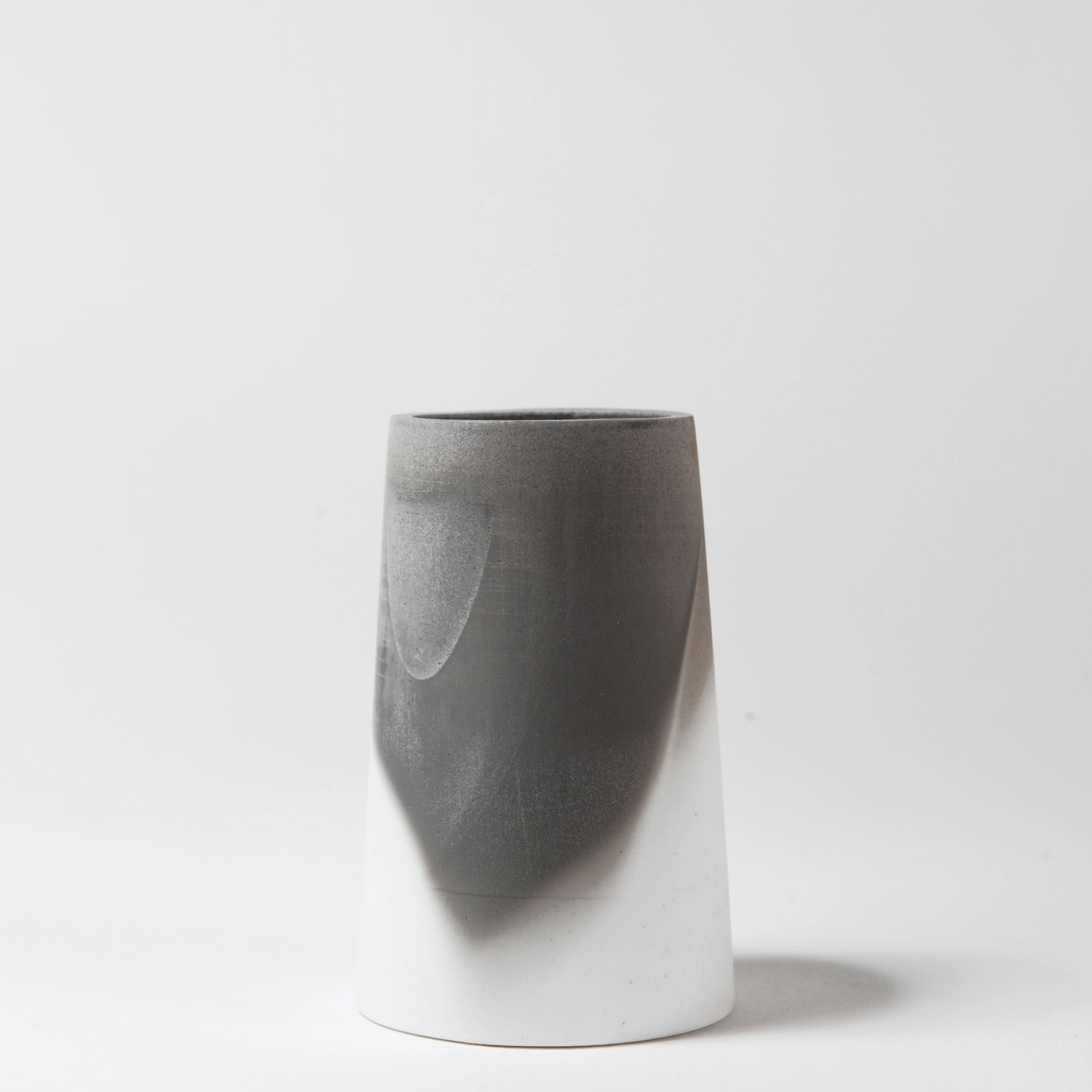 Fang’s methods are different from the traditional pursuit of porcelain: the exquisite glazing, painting, carving; everything needs to be perfect and avoids any mistake. Fang instead embrace the ‘accidents’, letting the material speaks for itself. There is no glazing, and with the smoked effect, the process is mostly uncontrollable; hence every piece is unique.