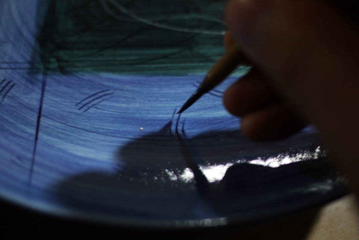 Step 3 - Brush the blue and white material to cover the bisque completely, then use different shades to paint the desired patterns.