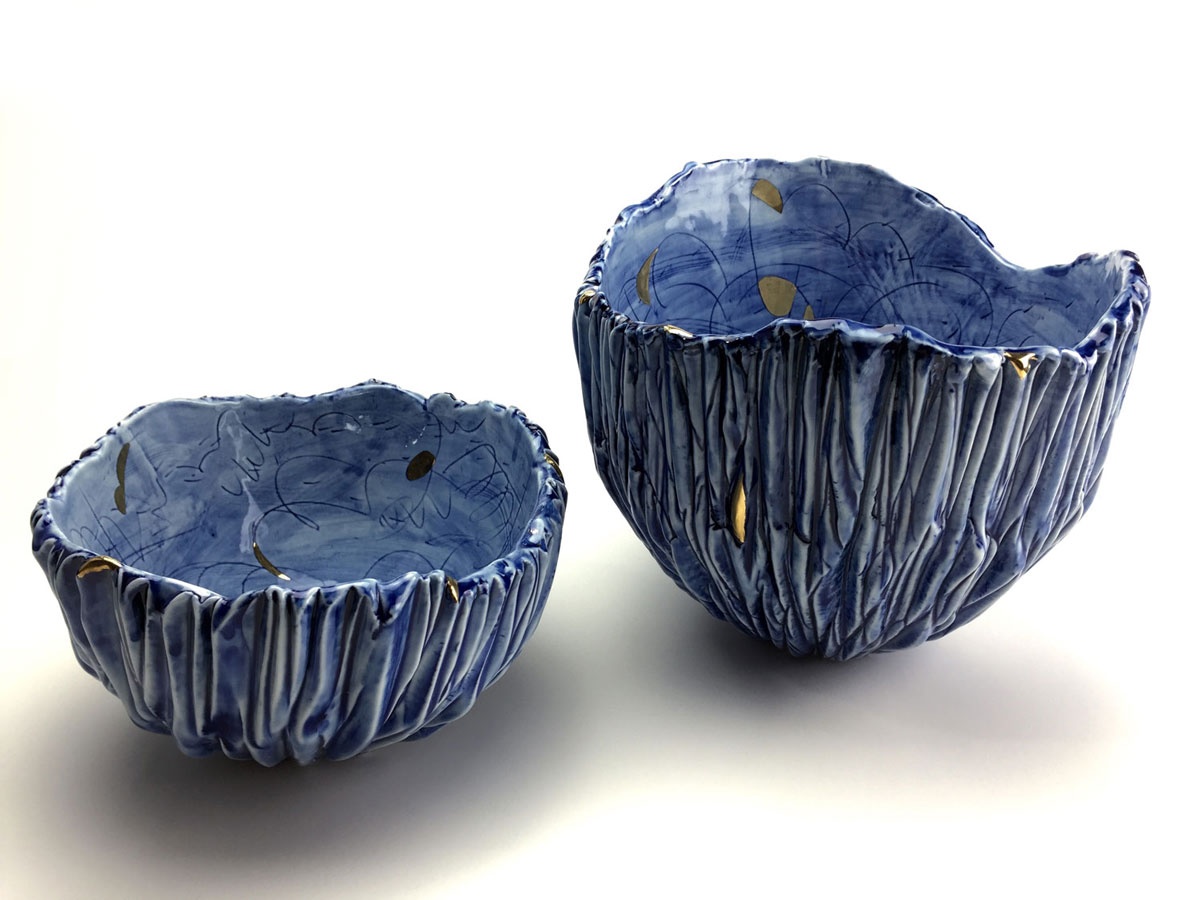Wang’s works reflect on his understanding of art from ten years of study in Jingdezhen’s traditional porcelain making. He is obsessed with the blue and white pottery from the Yuan and Ming dynasty, which possess different qualities in the glaze and patterns. The glaze from Yuan dynasty (1271–1368) is rich and thick, which result in a magical shade on the blue and white pottery. The effect is also something Wang is pursuing in his artworks.