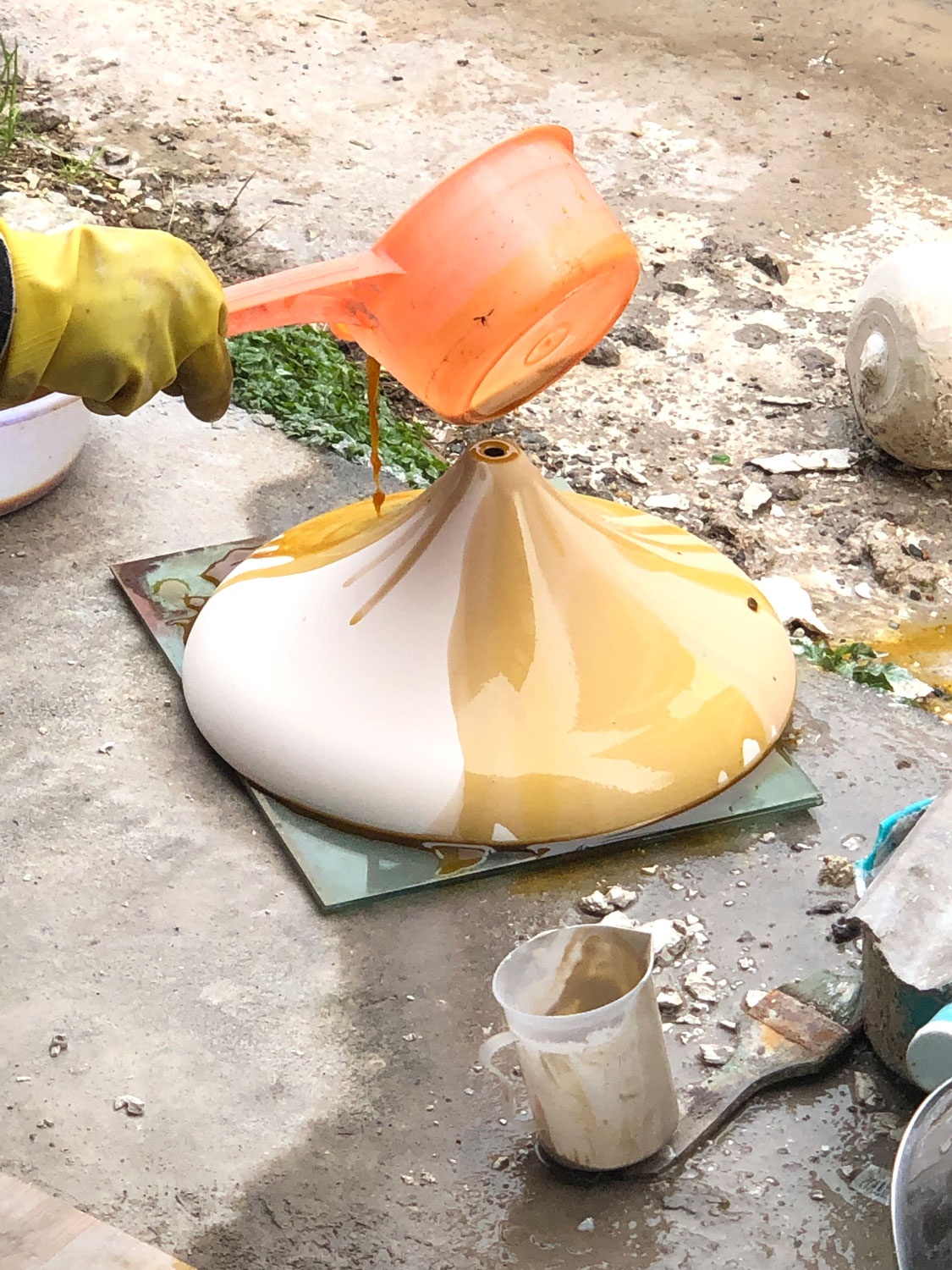 Traditional sand pits are replaced by gas kilns during the firing process, which as a modern firing option, are easier to control and more suitable for mass production. Moreover, the final products are more saturated and stable in colour since gas kilns can be set at a constant temperature and provide a cleaner environment without trace elements.