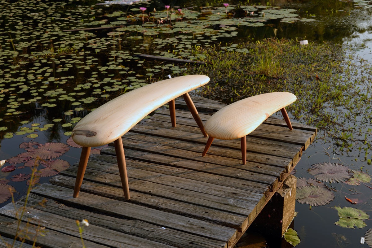The early works of Shimuji mostly adopted the dark wood (ebony) buried deep underground for years, the texture of which is solid and heavy while the section is smooth and delicate. Zheng did not use the efficient Western method to process the wood but relied primitively on the time. Over the decades, the wood changed from raw material to a mature one, later it needs to be immersed in the pond for one or two years and then seasoned for half a year. In this way, the beauty of the wood will be revealed straightforward, and all the design later is based on the wood itself. When polishing, Zheng almost stubbornly insisted on hand making, believing that through the contact between skin and wood can refresh the affinity of his work and hoping the living wood continue its own property and the temperature of its maker.
