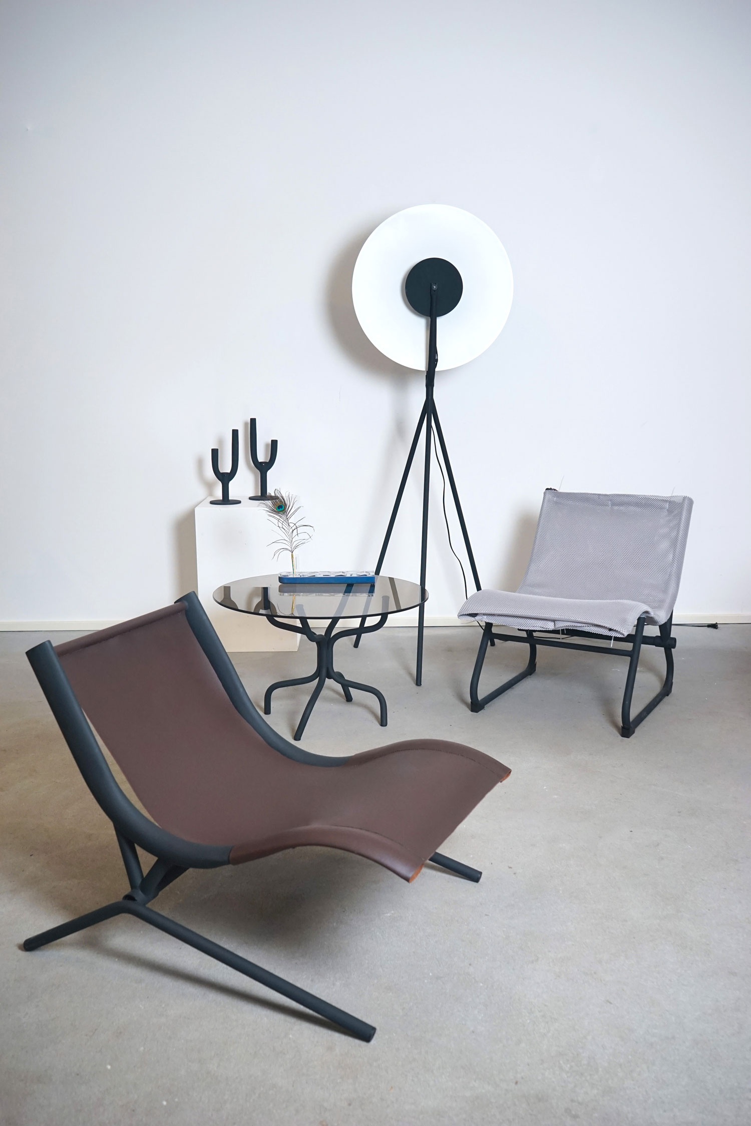 躺椅:经过不断的角度调试发现,车架的弧线是符合人体工学的,于是便将它融入到了休闲躺椅的靠背部分。