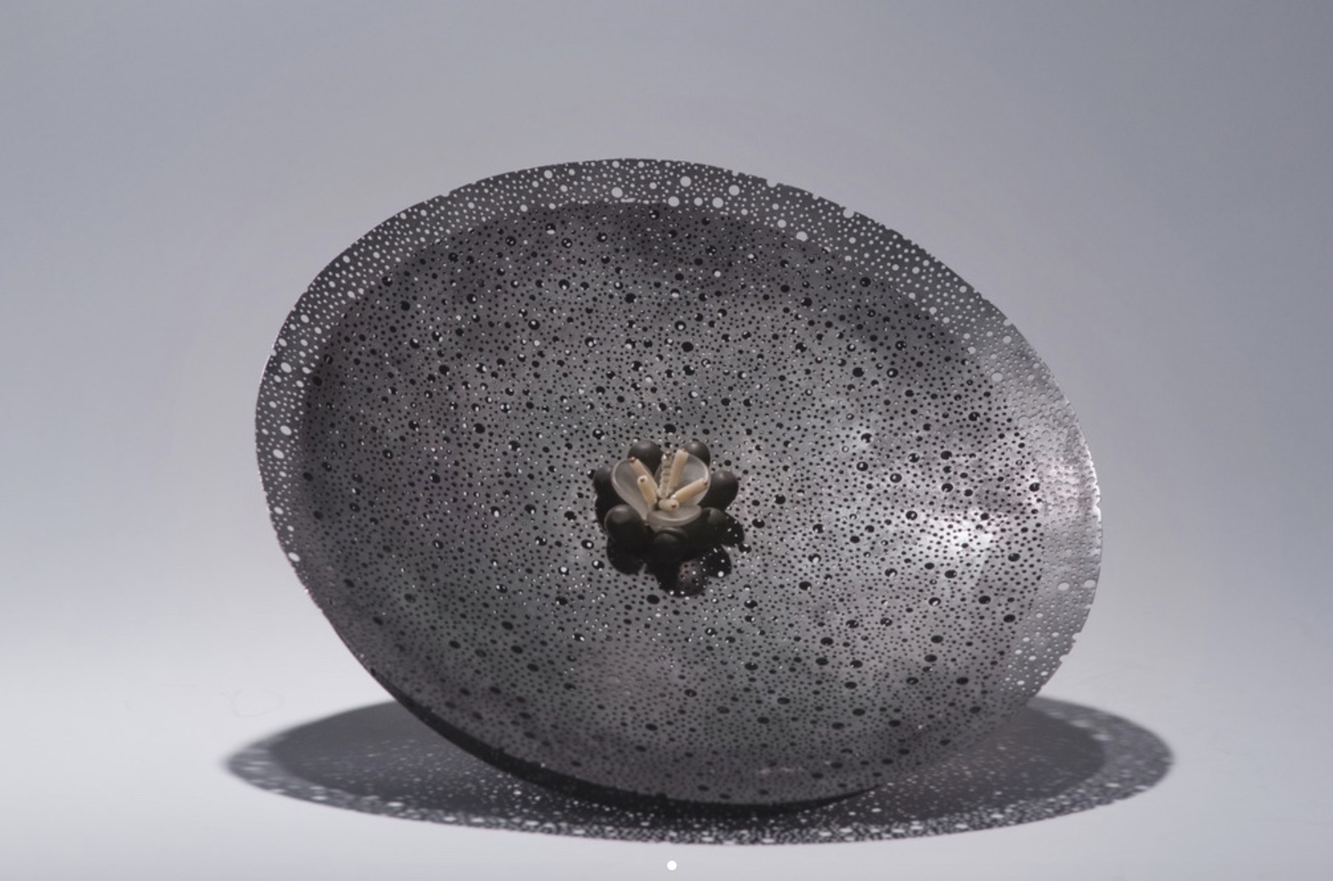 “Subtraction” is an essential element in Hsieh’s work. She uses welding technique to dig holes on the metal, delivering a sense of illusion and motion. She tries to change the public’s stereotypes towards metal, and shift the focus to what’s behind the representation of artwork. After pealing the solid layers of metal, what is left is the dedication to art.